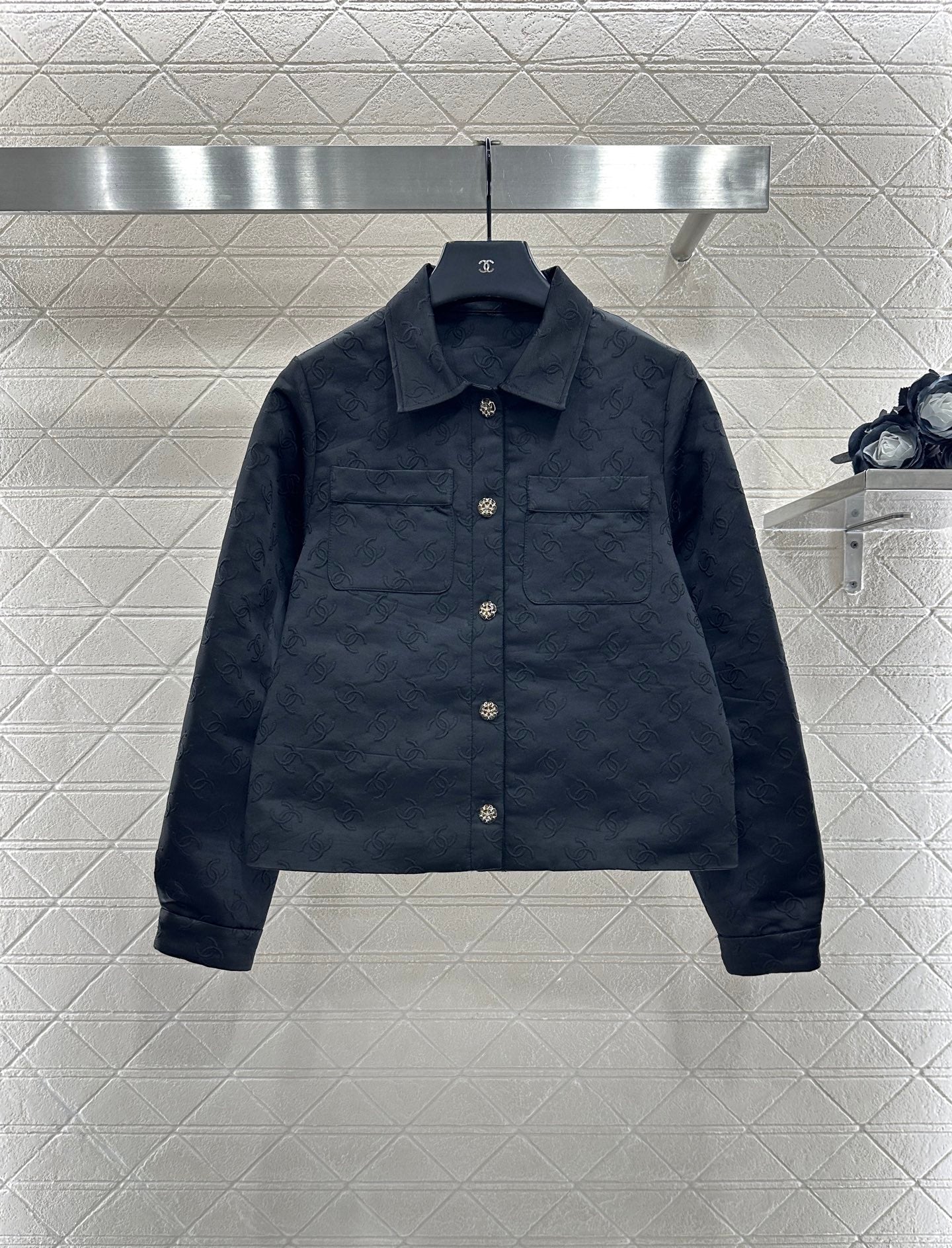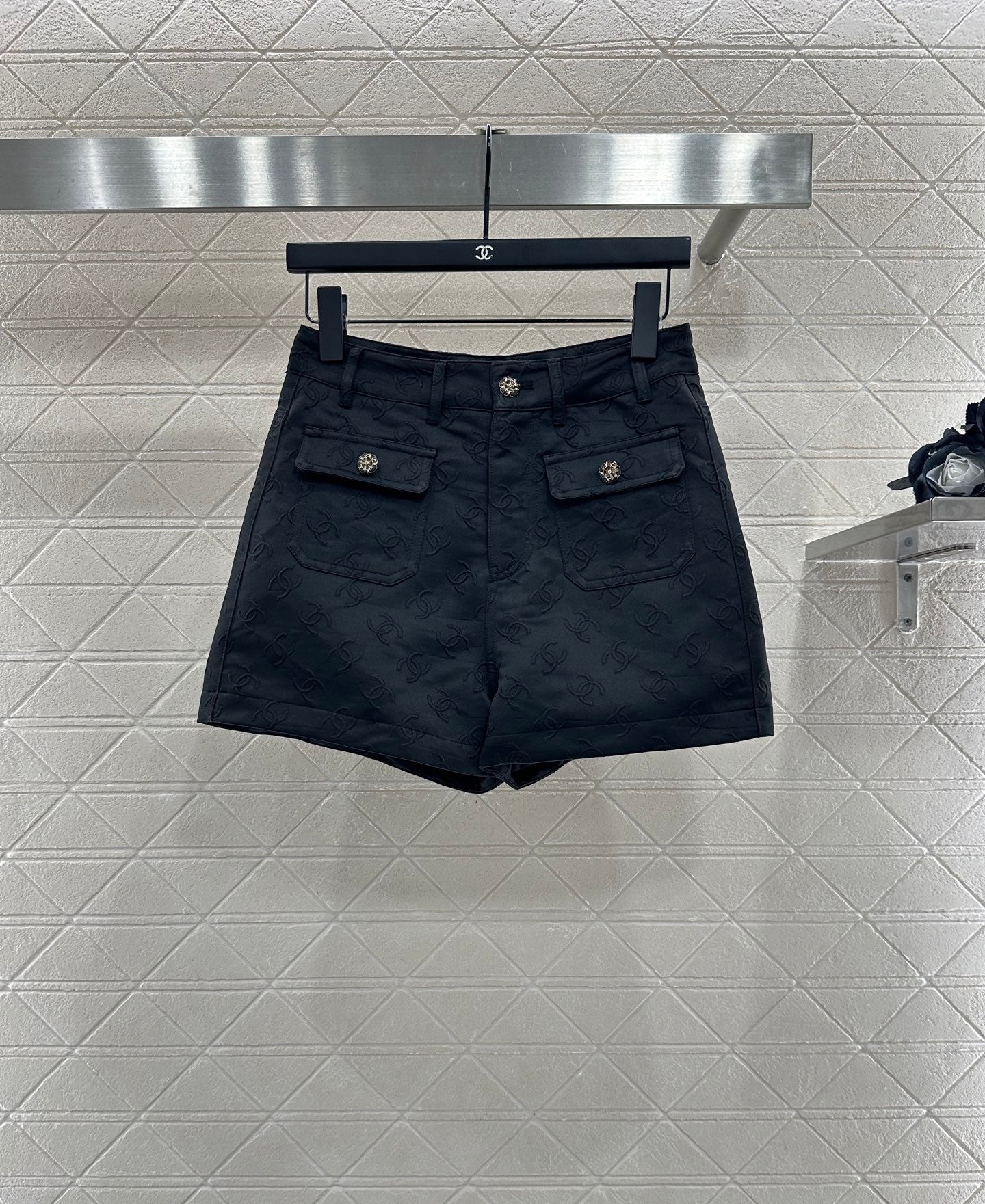 Jacquard material, high-quality texture, full of appearance, fully covered with double C throughout, with a prominent style. Symmetrical pocket jacket shorts set, with a shoulder design that fits the human body, making the body look slender and straight. The flower round buckle on the front of the shirt shines and is charming. Paired with high waisted shorts of the same series, the jacquard double C echoes, perfectly interpreting the casual luxury, fashionable style, and daily commuting