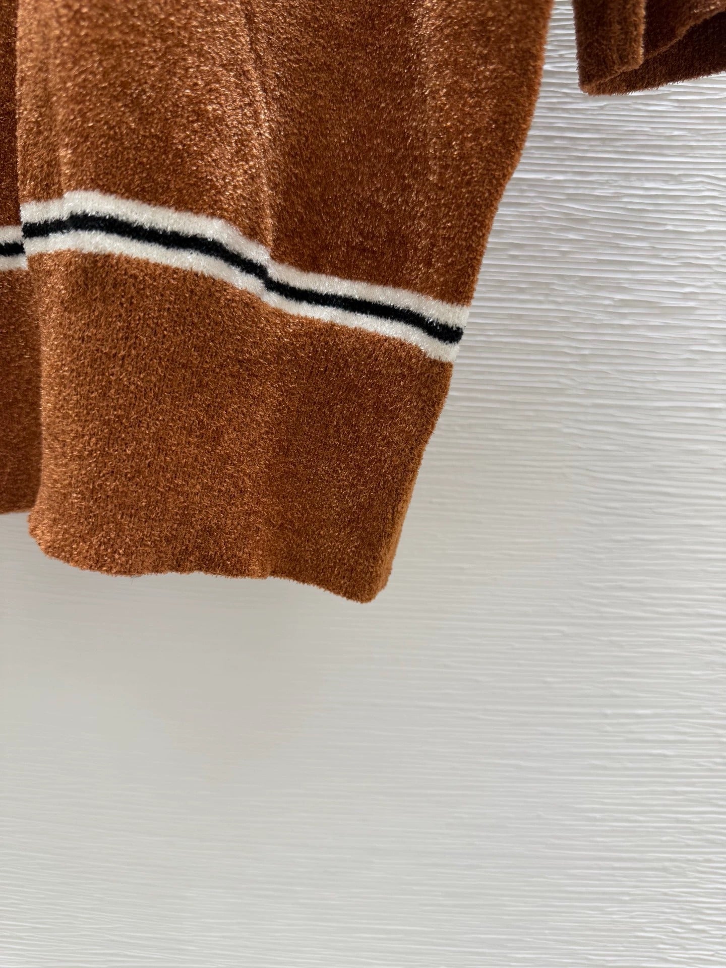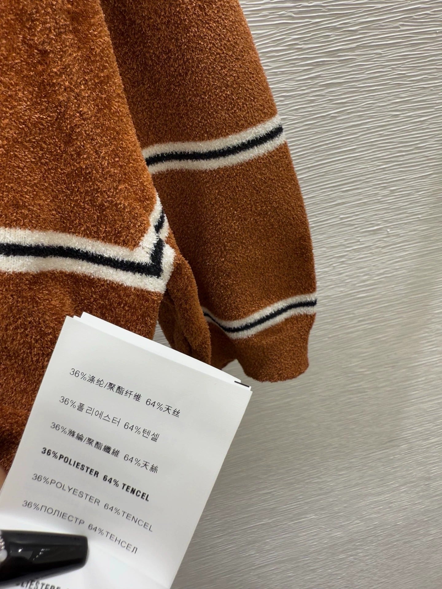 Available in coffee or navy, this jacket features a classic striped design and logo embroidery on the chest. Made from 36% polyester and 64% Tencel, it's soft and comfortable. It has a round neckline, a pullover design, and a loose fit, perfect for spring and autumn.