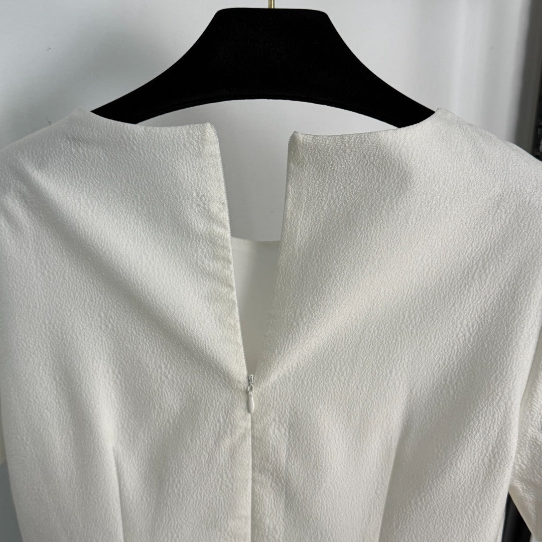 Heavily crafted diamond-studded shiny silk jacquard waist-length short-sleeved dress, the upper body is slim and thin, super temperament, heavy product