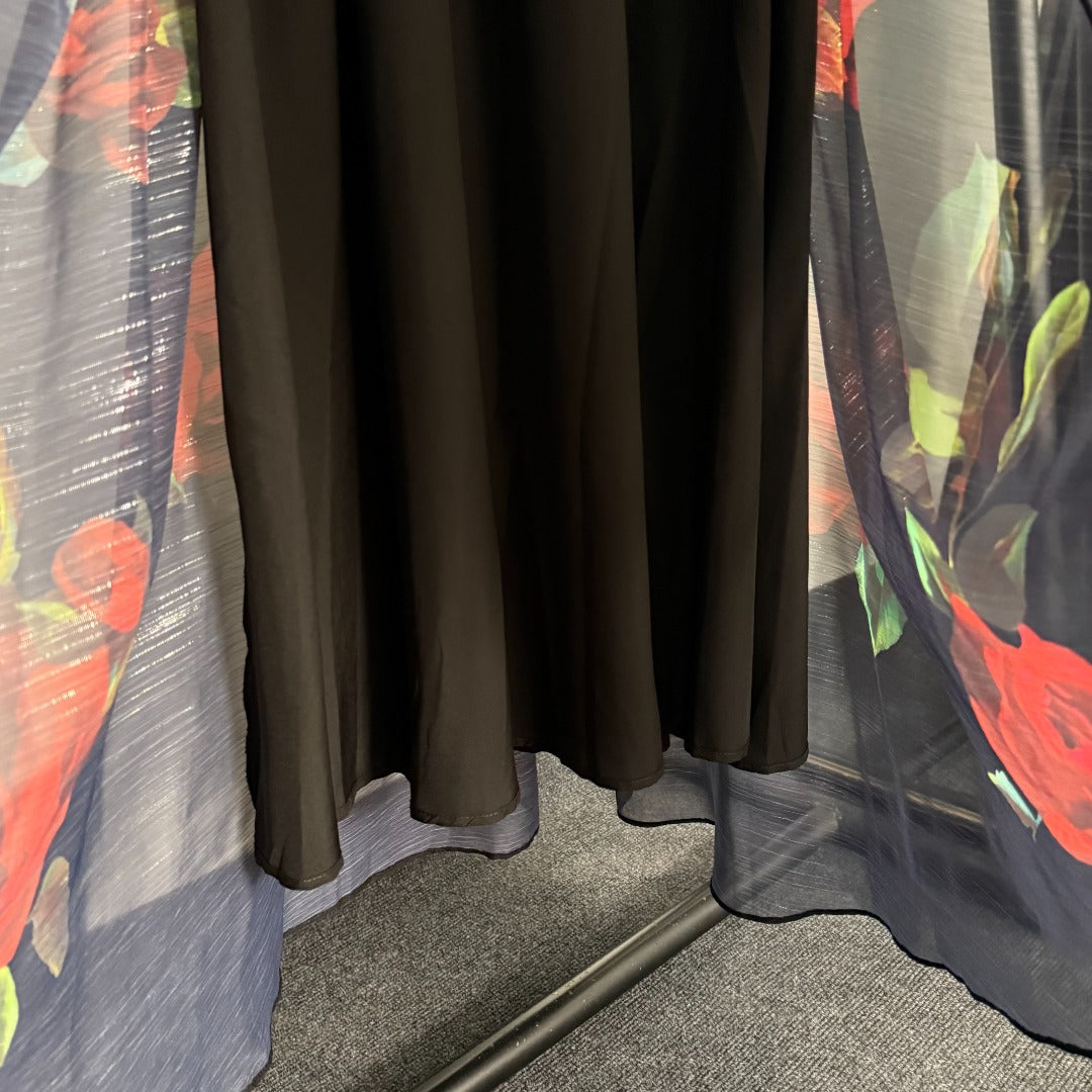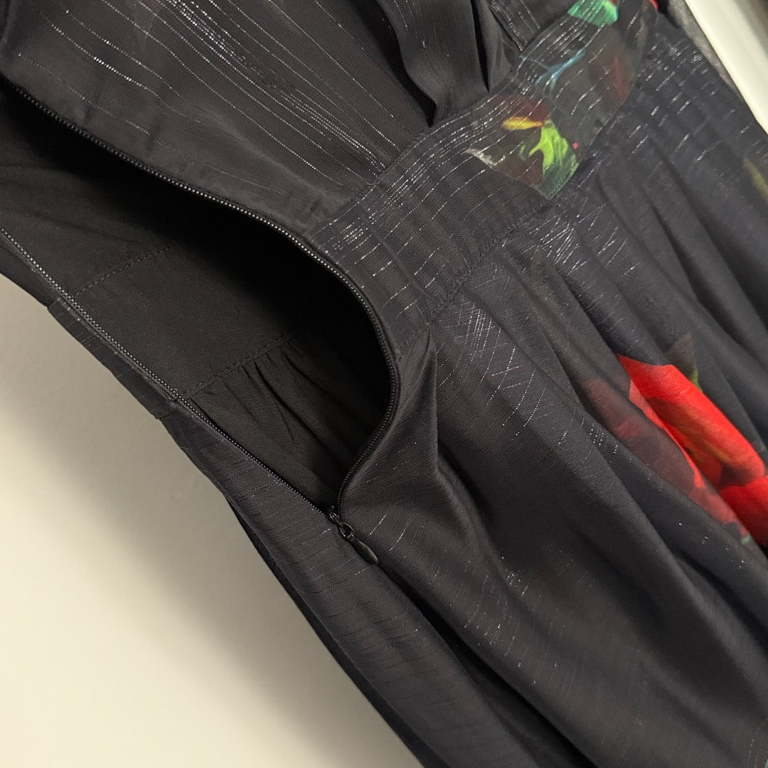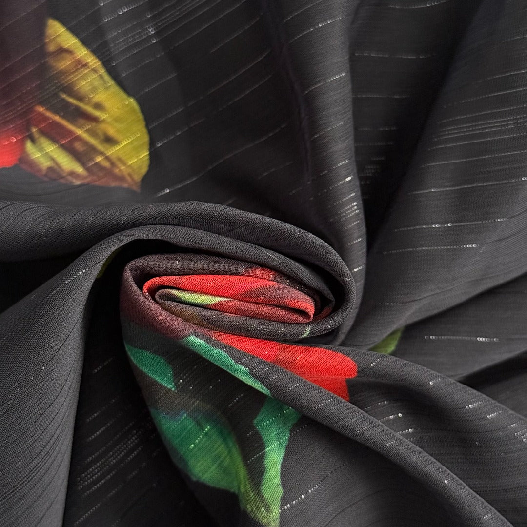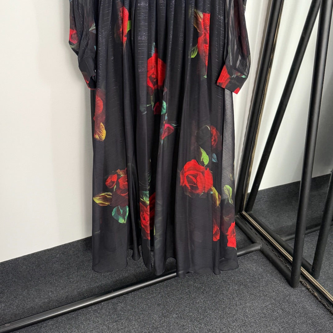 Red rose print, elegant bow tie collar, bubble long sleeves, the upper body is slim and slim, super temperament