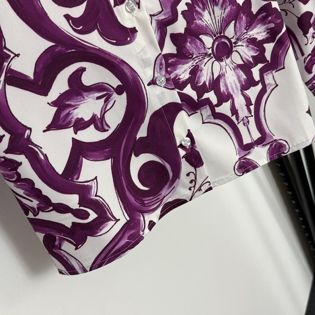 New Retro Pattern Print Short Sleeve Cropped Shirt, the upper body is slim and thin, super temperament, heavy product