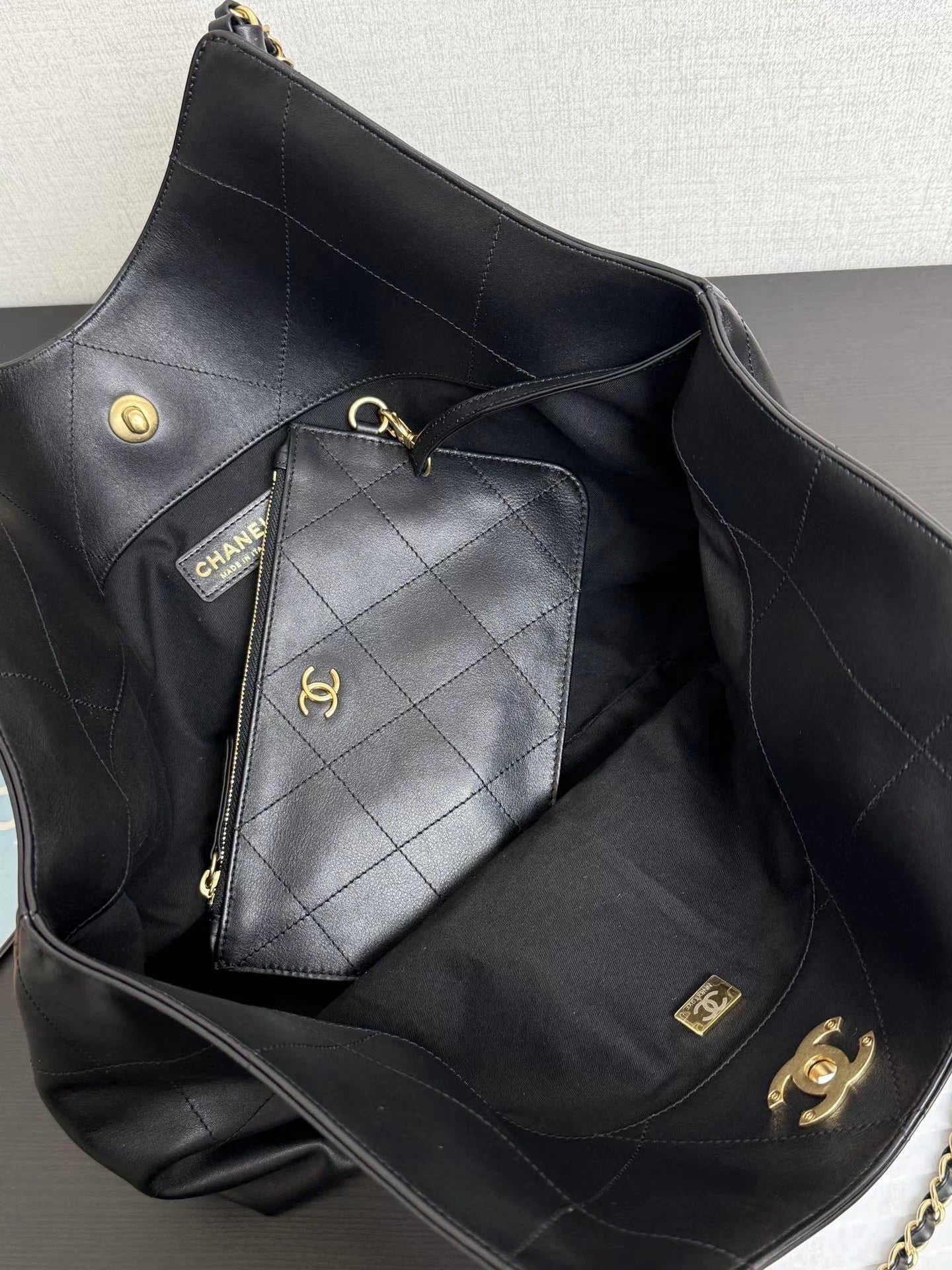 Black gold color scheme, classic diamond grid pattern, chain shoulder strap design, super large capacity, versatile for commuting and going out! Made of calf leather material, the upper body weighs very light, super beautiful!