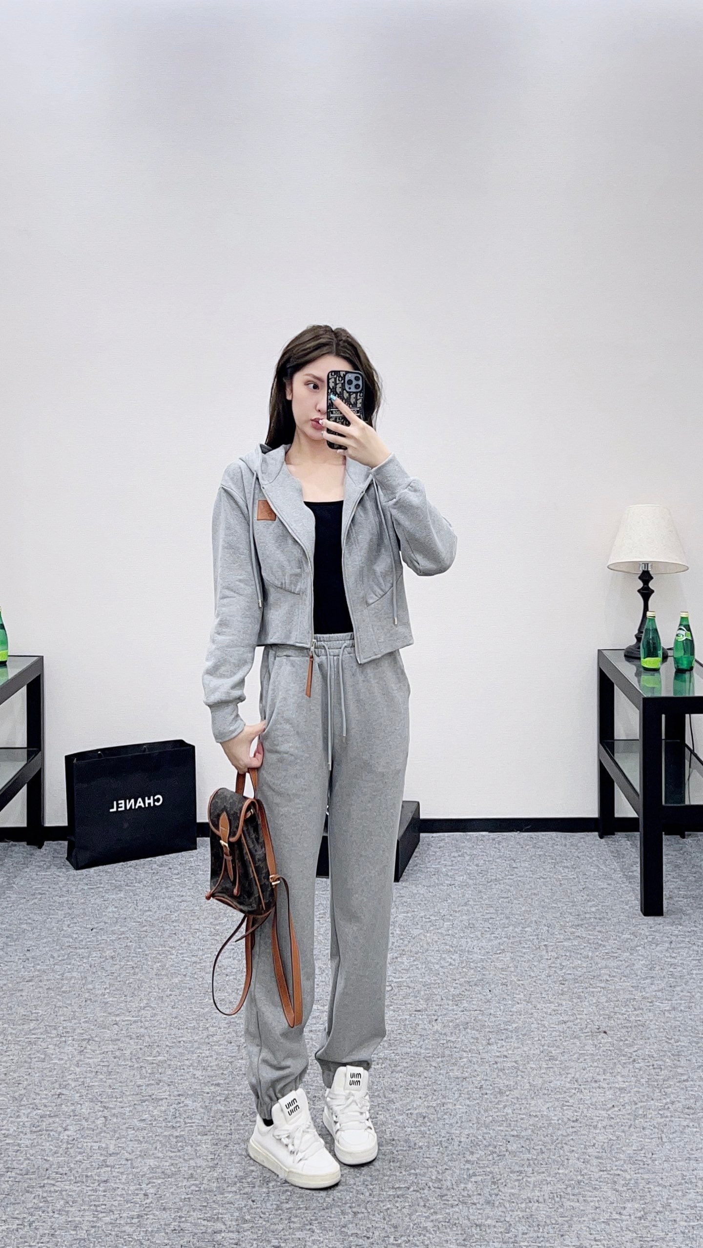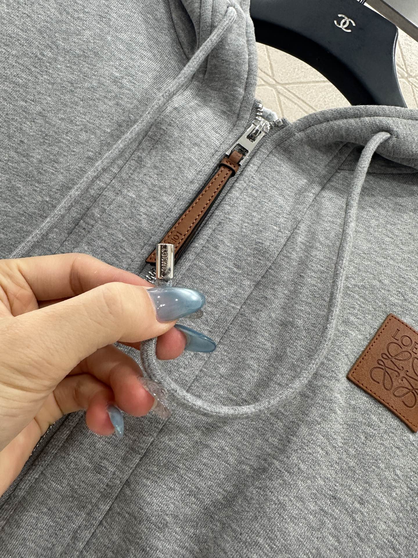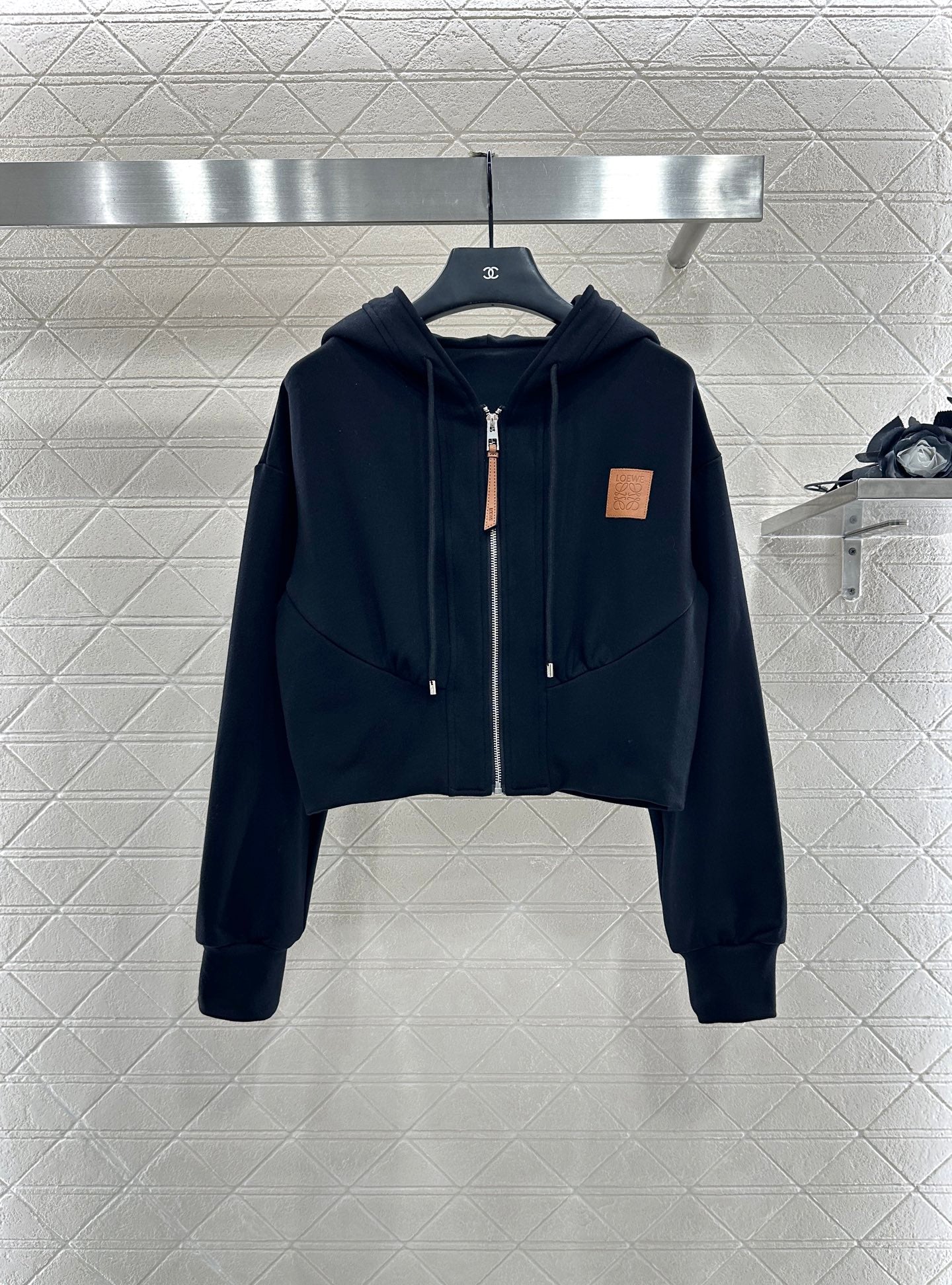Customized YB twill cotton material, textured and glossy, high-quality appearance, hooded drawstring casual jacket, zipper placket adjustment, three-dimensional tailoring of waist and abdomen, full of slimming silhouette. The brand totem logo is embellished on one side of the chest, and the leather highlights the brand's tone. Paired with the same series of cuffed trousers, the waist drawstring is elastic and tight, making it stylish and simple, and easy to wear for daily commuting.