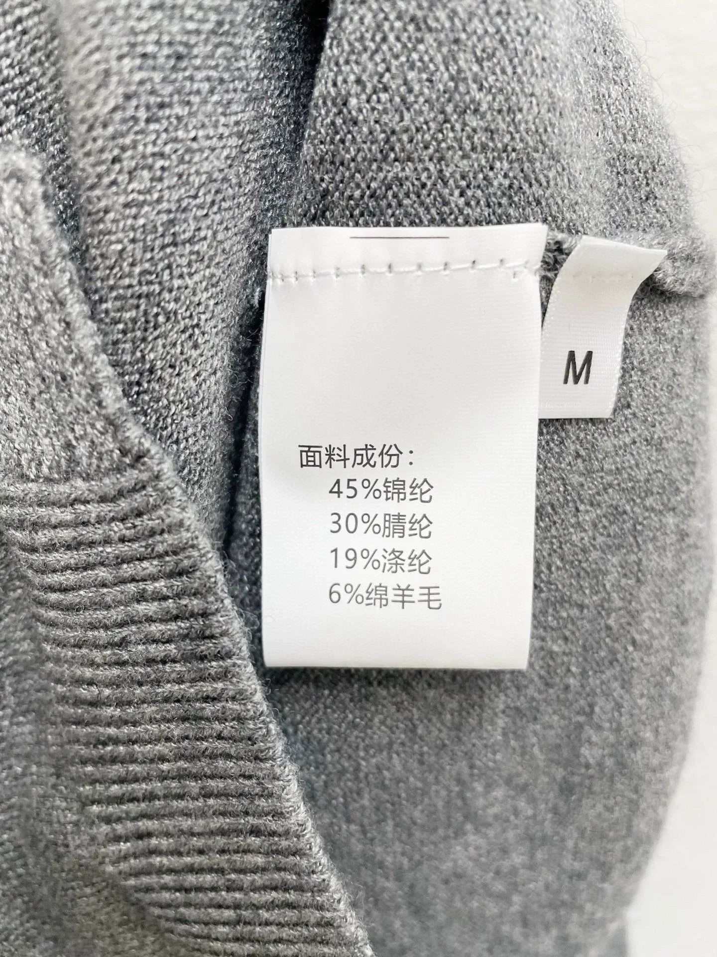 The fabric is made of 45% nylon, 30% acrylic, 19% polyester, and 6% sheep wool, with a soft and comfortable touch.