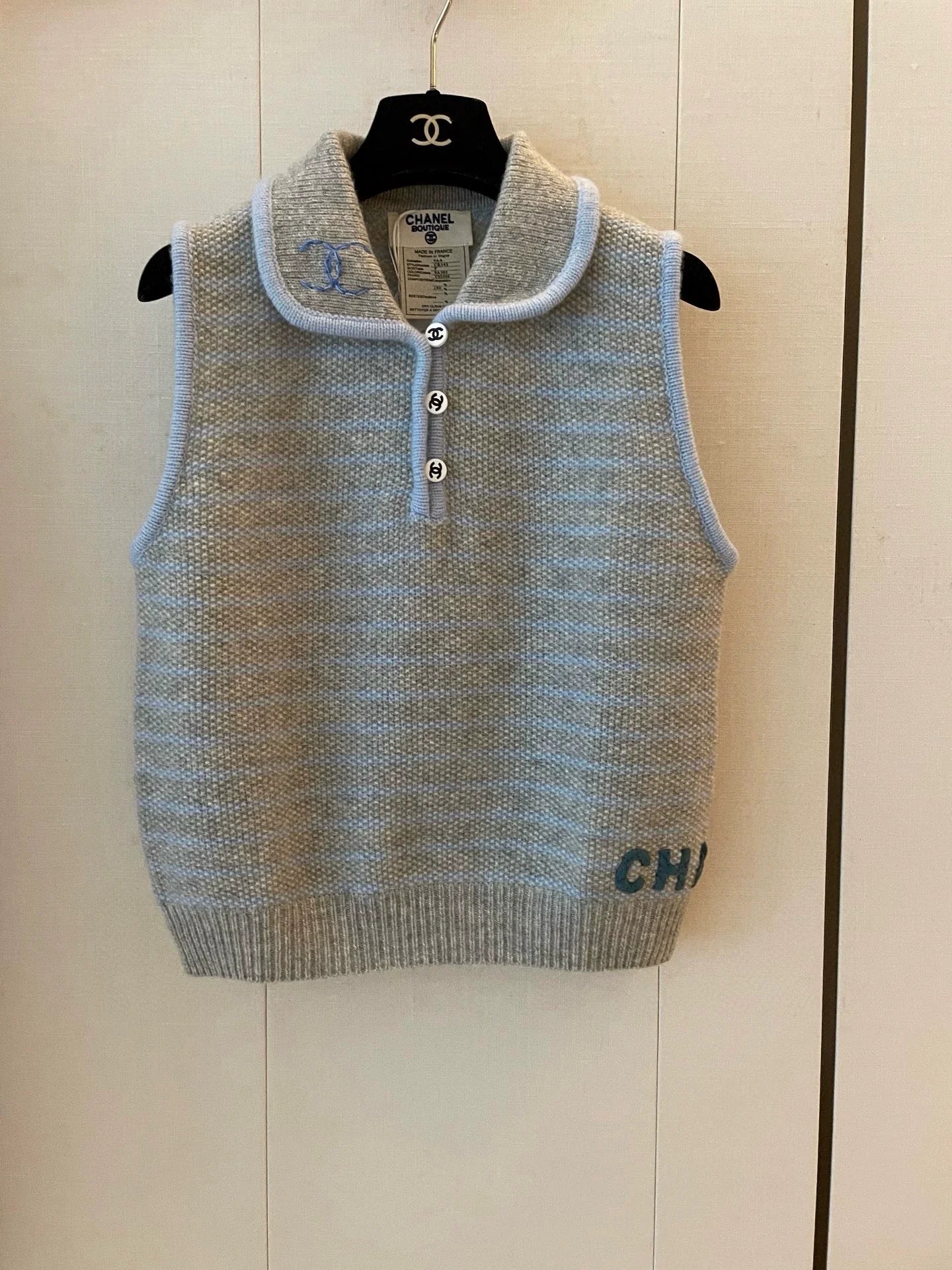 This knitted sleeveless vest features a unique lapel and half open button design to create layers. The crochet knit texture is delicate, the sleeveless cut is sharp and slimming, and the artistic temperament of the upper body is fashionable