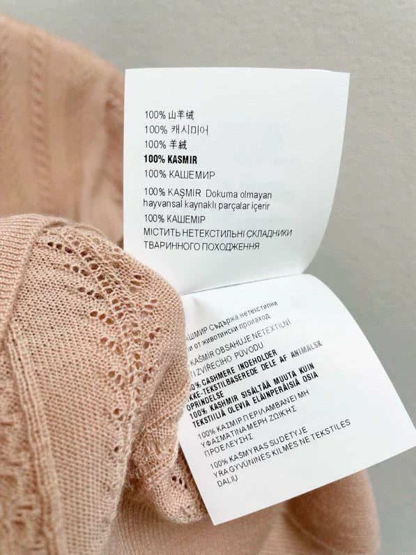 The fabric is made of 100% cashmere, which is soft, comfortable and textured. Exquisite wheat grain texture design, small logo embellishment on the chest, short sleeved collar design, and vertical pit bar hollow craftsmanship.