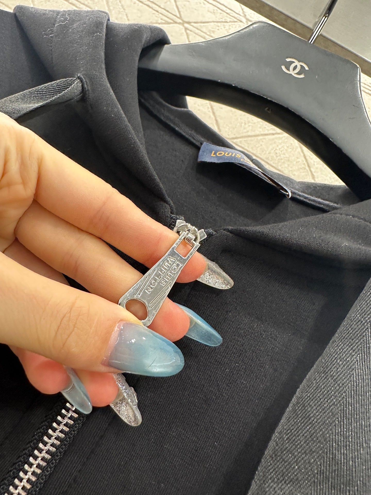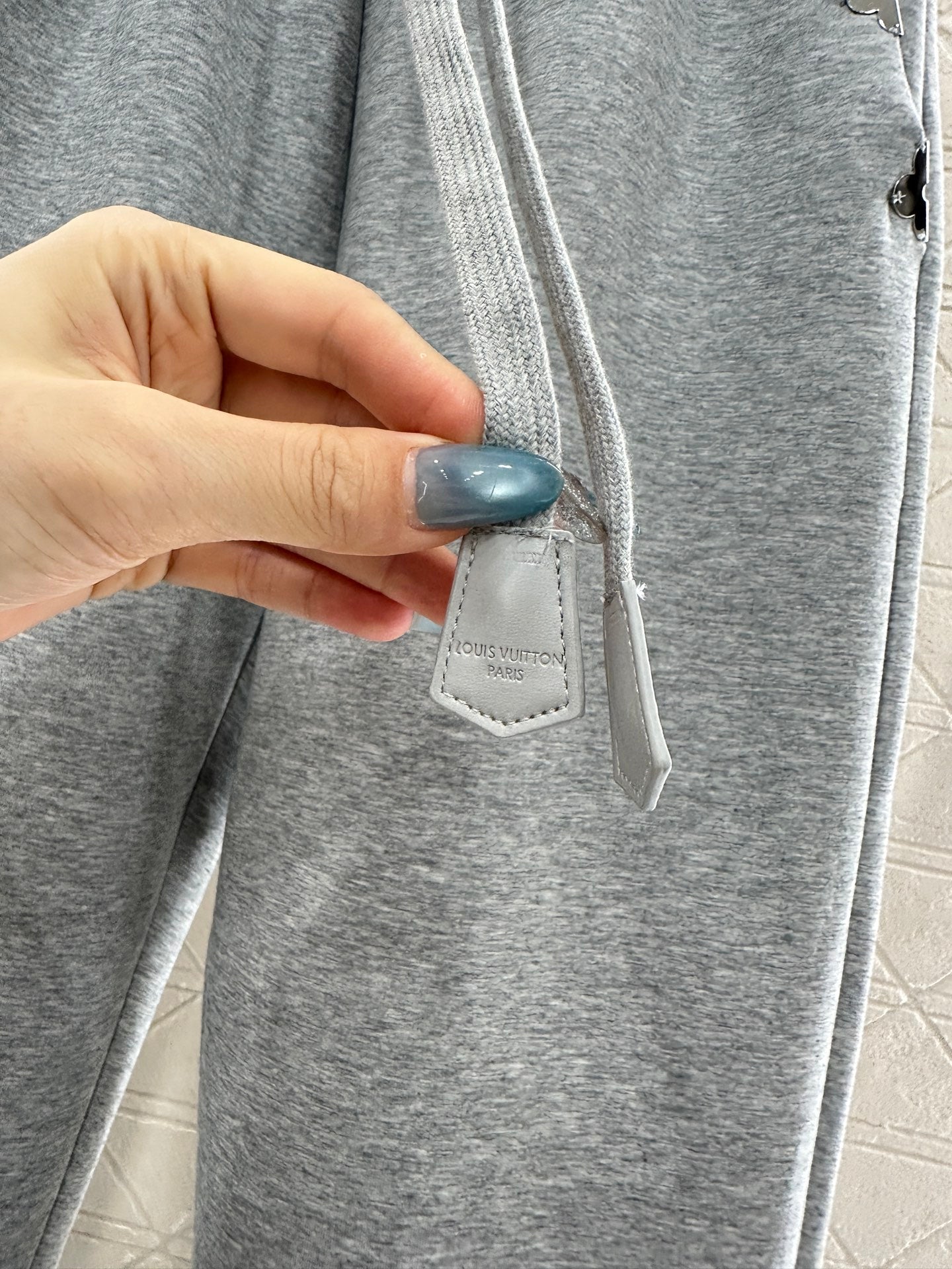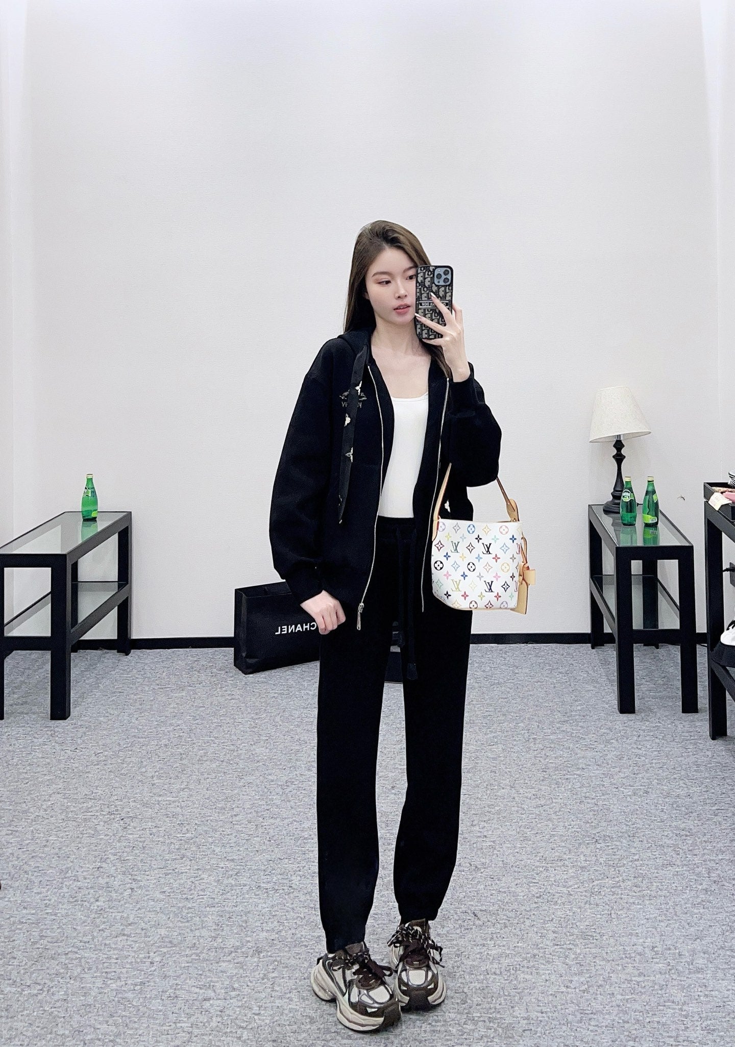 Made of all cotton material, with a glossy texture and a high-end appearance, this loose silhouette hooded drawstring jacket features an adjustable zipper opening for a casual feel. The drawstring edge is embellished with a four leaf clover metal logo, highlighting the brand's tone. Paired with the same series of leg tied pants, the drawstring at the waist is elastic and stylish, making it easy to wear for daily commuting.