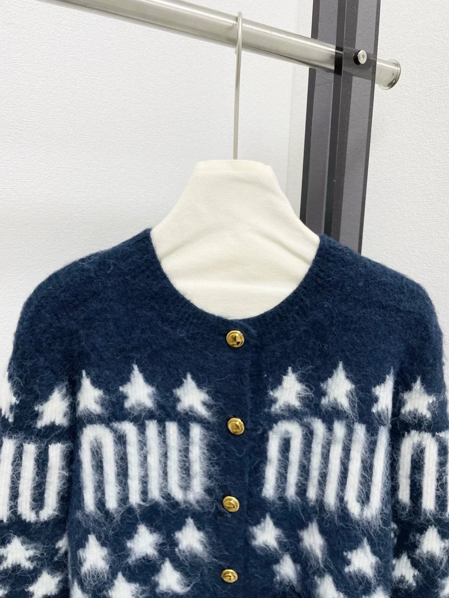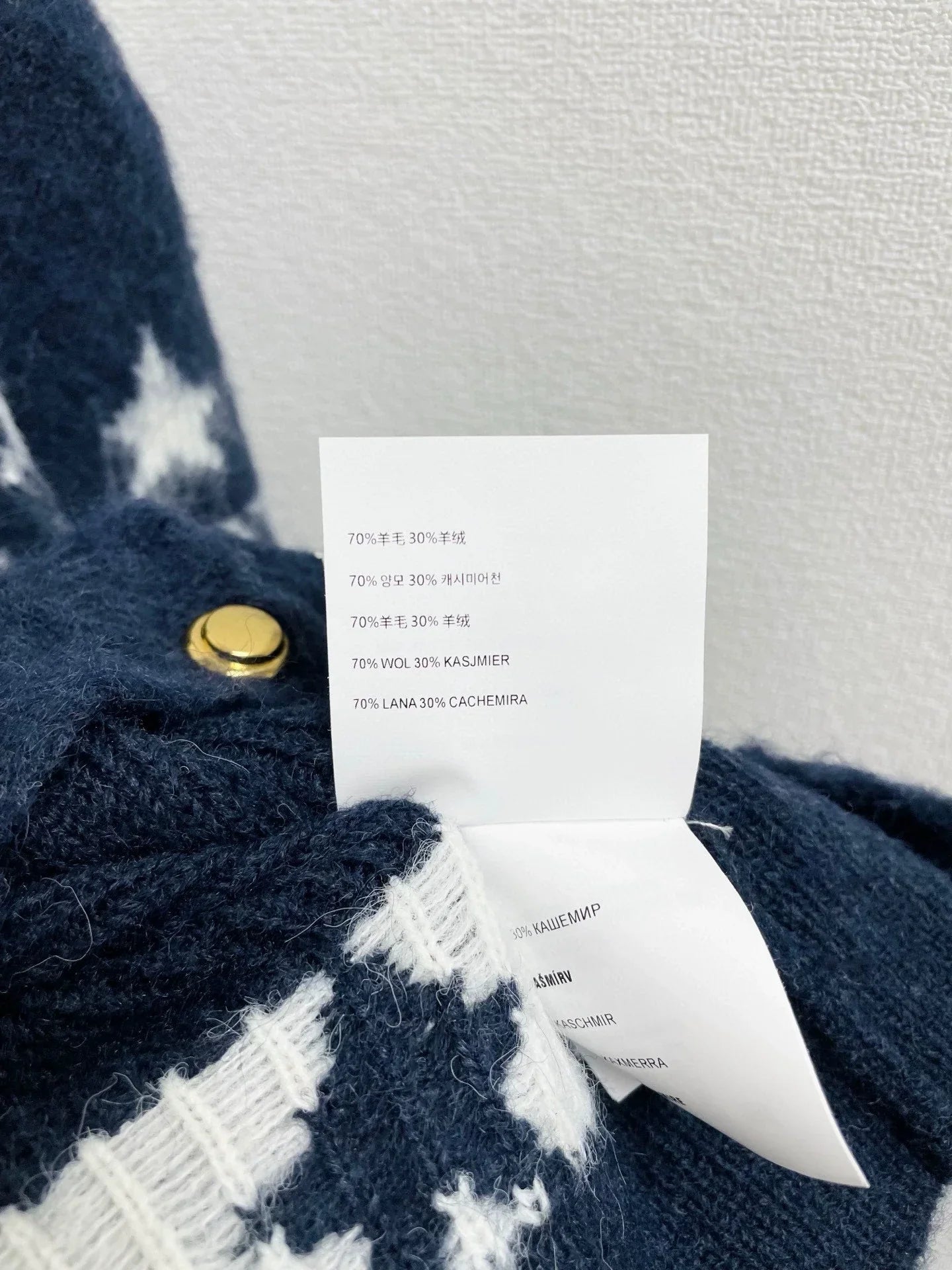 The fabric is made of 70% wool and 30% cashmere, with a soft and comfortable touch. Star pattern design, classic Fel Island style. Gold buttons embellish, simple and elegant.