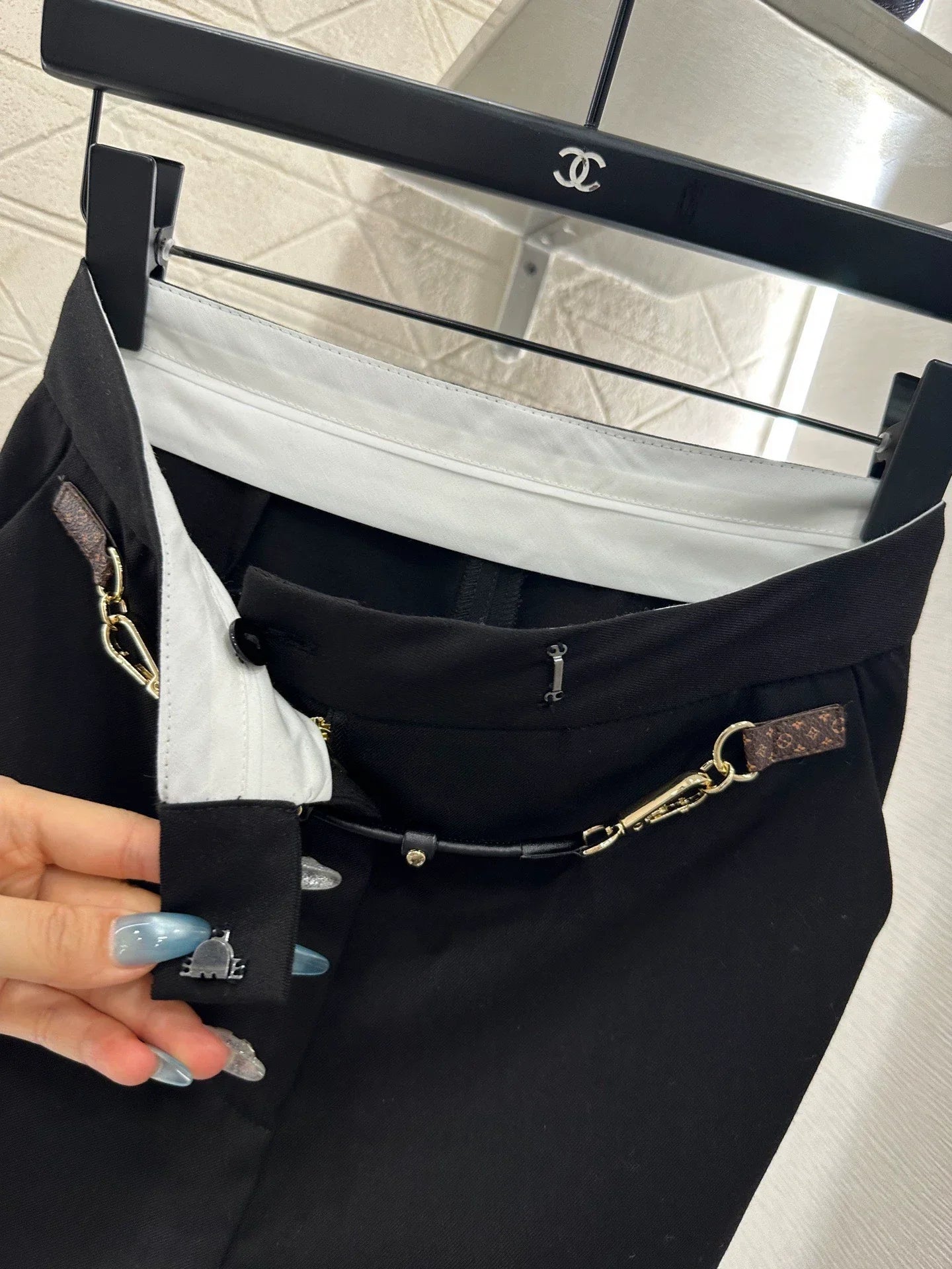 Exquisite imitation wool material, glossy texture, full of drape, high waisted straight pencil pants, decorated leg shape, slimming and slender, leather floral chain buckles on both sides of the waist, drape increases the sense of layering, the design is not picky about body shape, inclusive and slimming, loose and stylish dressing, essential items for autumn and winter, daily commuting