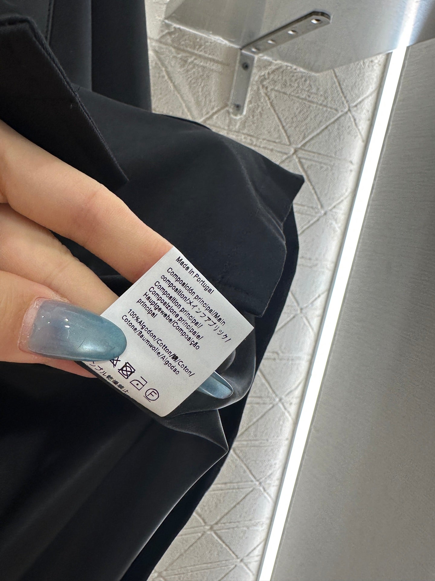 Made of all cotton material, with a premium texture and a stylish look, this jacket features a front shoulder lapel collar and suede collar collision. The small details of the grid pattern on the inside of the collar edge and the double collision of color and fabric set a simple and fashionable tone. The leather totem logo on the chest highlights the brand's high-end style, and the amber round buckle is rich in details. The medium to long micro A-line cut is neat and elegant, easily showcasing a high-end and elegant style. It is fashionable and relaxed to wear, suitable for daily commuting 👌