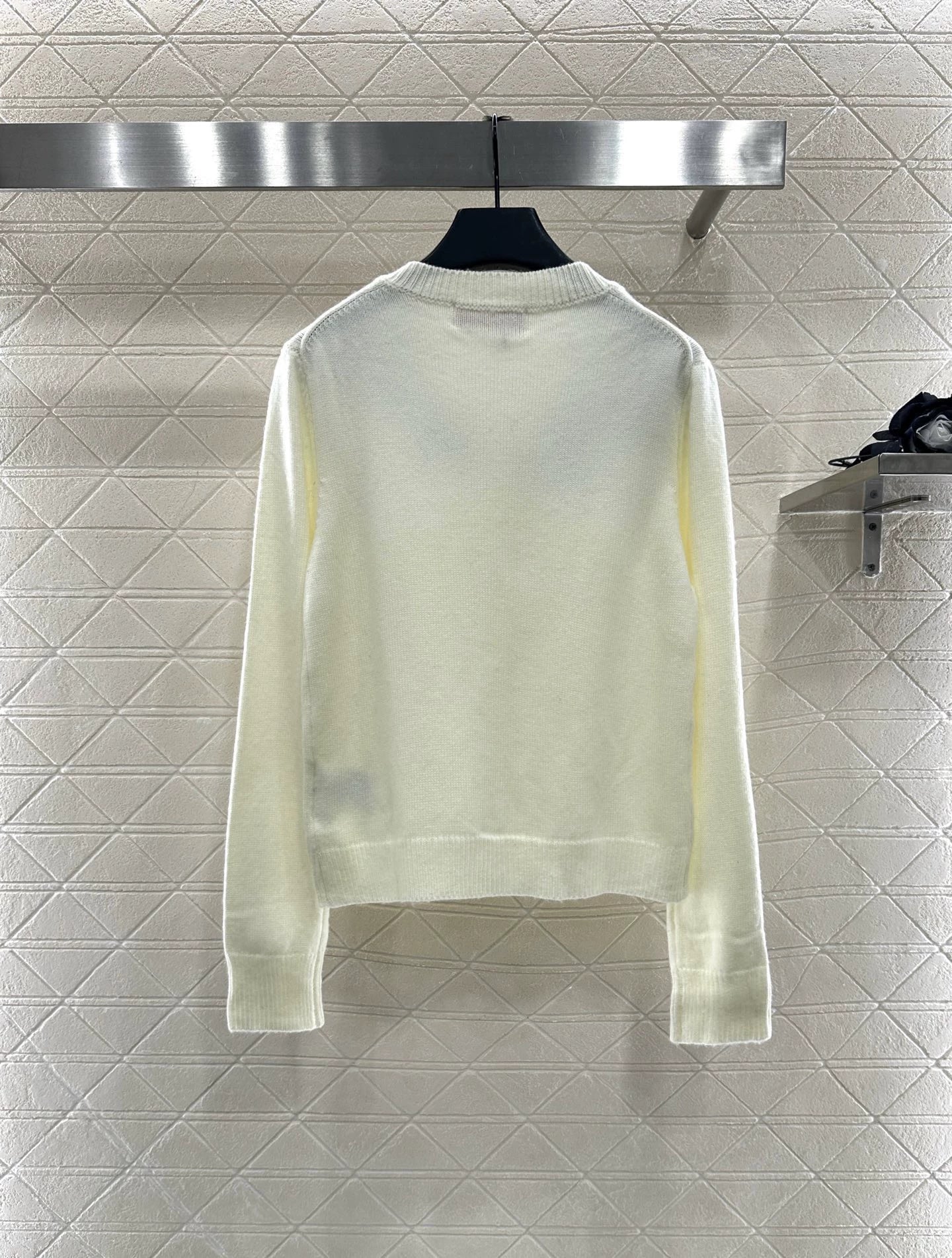 Woolen yarn weaving, delicate texture, comfortable to wear, round neck knitted cardigan cut, symmetrical embroidery process on the body, outlining flower patterns for a more luxurious look, edging with elastic threads to outline and tighten, matched with elastic fabric, fitting the body shape for a slimmer look, showcasing brand tone, versatile style that does not choose age or skin color, making it more relaxed