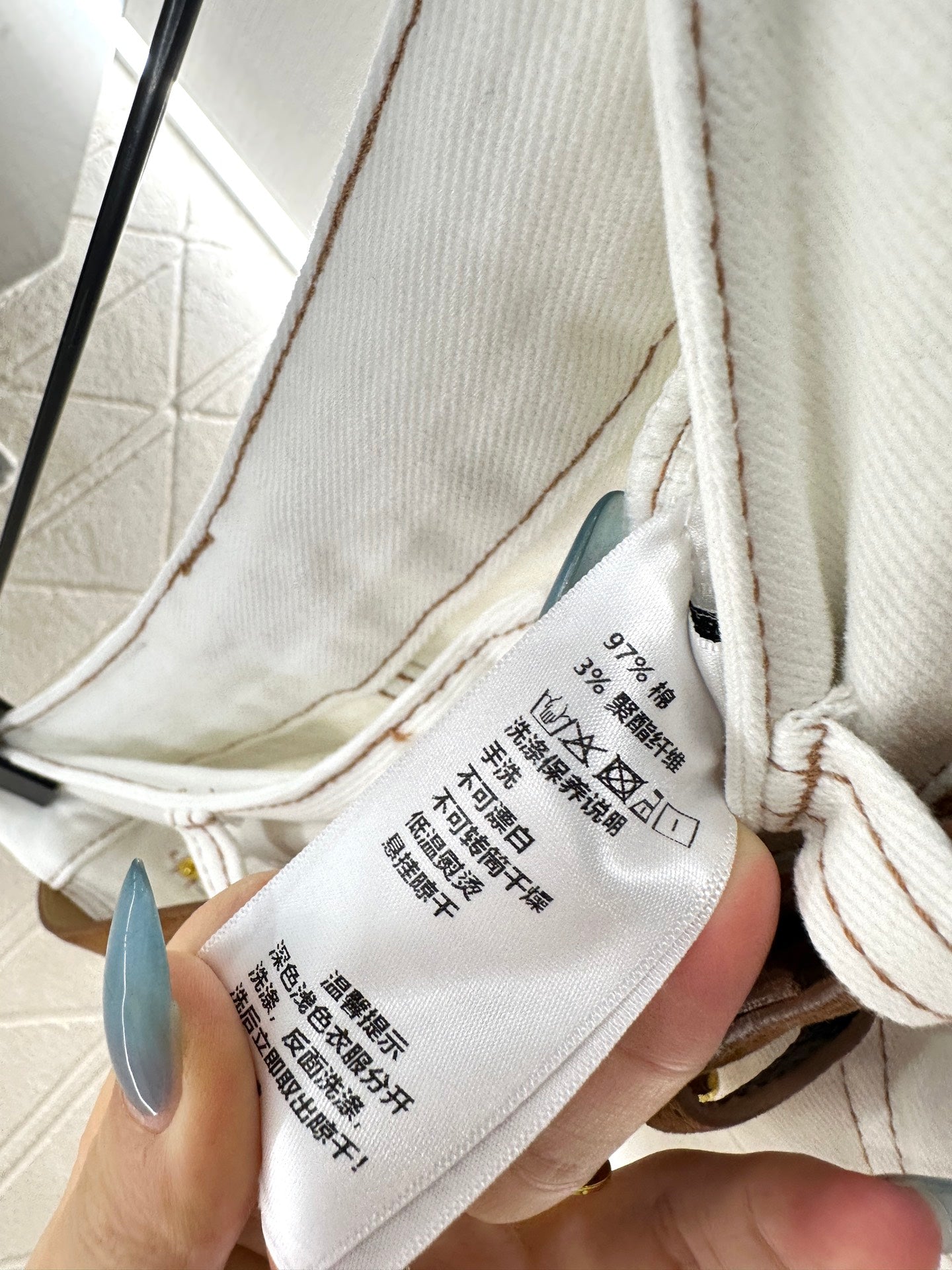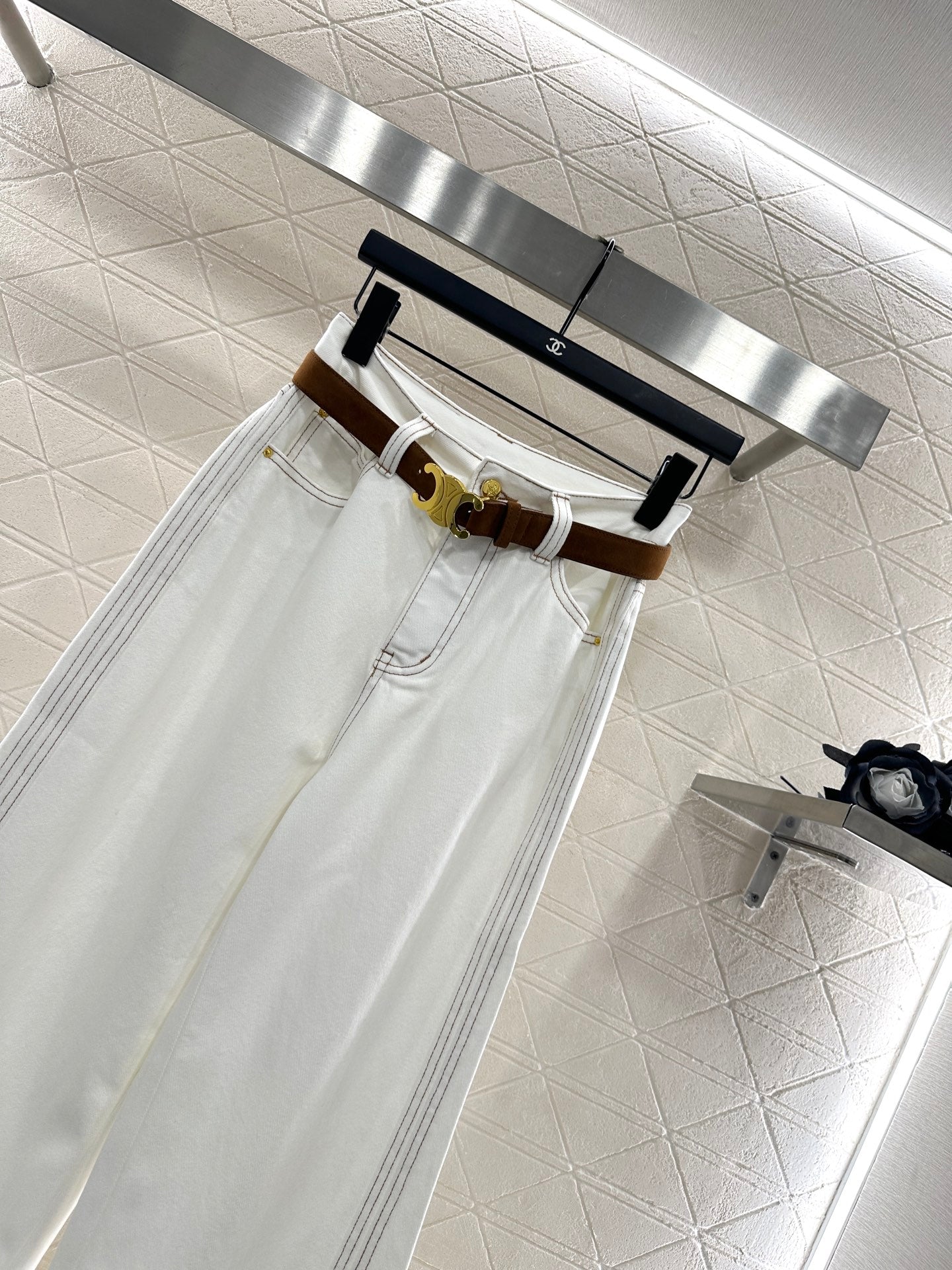 Made of cotton denim material, the fabric is soft and comfortable, with good breathability. It has been repeatedly treated with enzyme washing technology, and the center line presents a curved knife outline to outline the lines, making it more textured. The high waisted round buckle ➕ Embroidered Arc de Triomphe logo on the back hip pocket instantly elevates the brand's style. The high waisted straight tube version is matched with a belt to outline the waist, allowing for easy adjustment and unrestricted wearing. It effortlessly reduces age, accommodates and modifies leg shape, and exudes a lazy and casual style, perfect for vacation, dating, and daily life