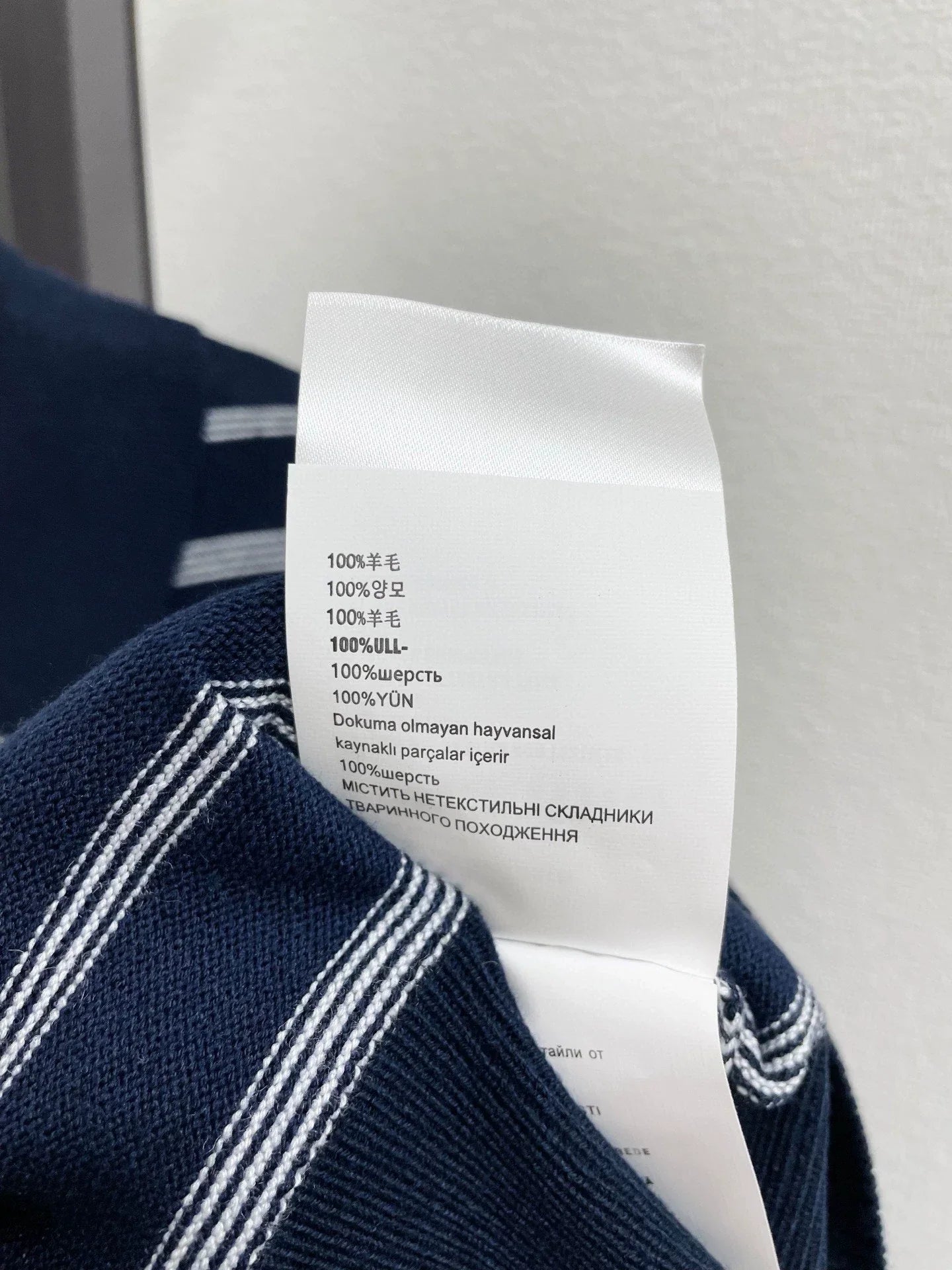 Classic striped design, half zipper style. Small badge embellishment on the chest.