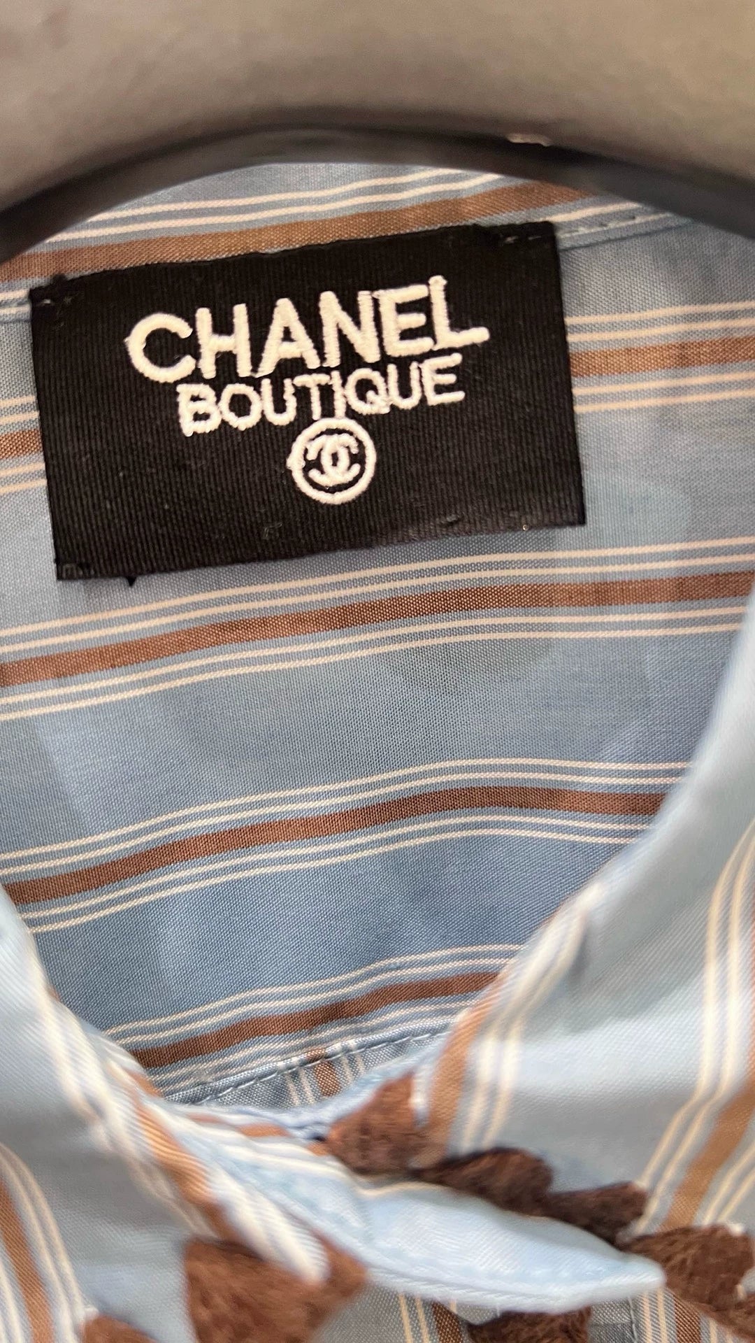 Light blue background with coffee stripes, exquisite shell embroidered lace collar design. The waist cinched lotus leaf edge design looks slim, and the long sleeved style is suitable for wearing in spring and autumn seasons.