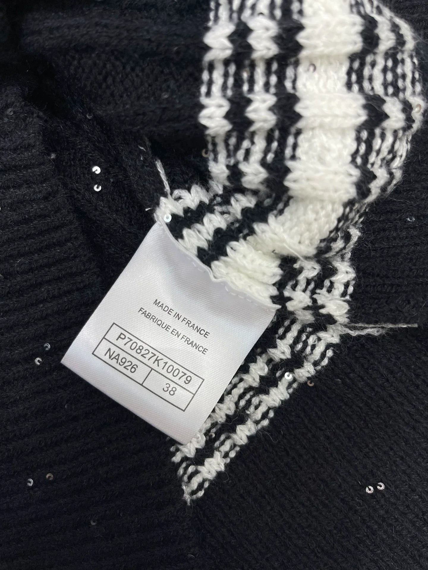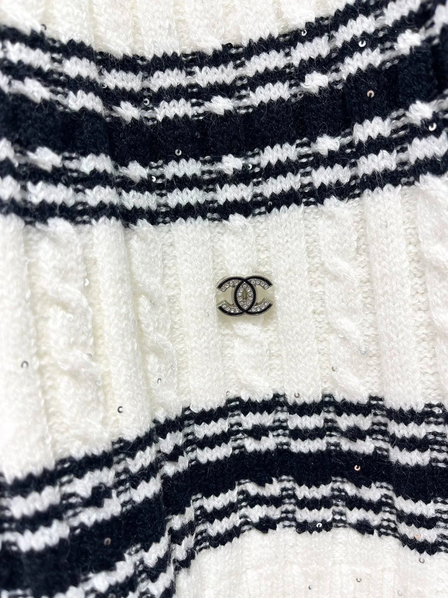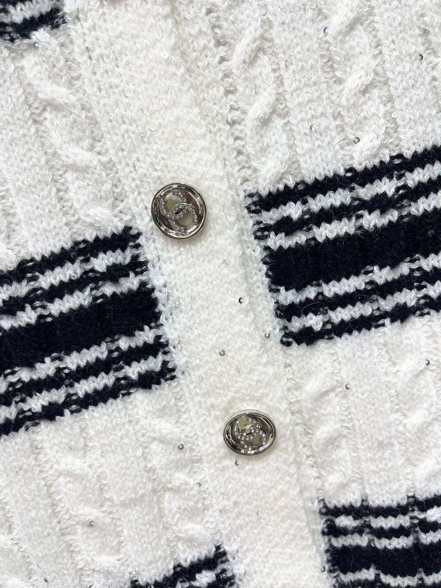 Striped+lapel+metal buckle design, loose yet luxurious, black and white colors suitable for different styles, soft knit texture, easy to create elegant temperament.