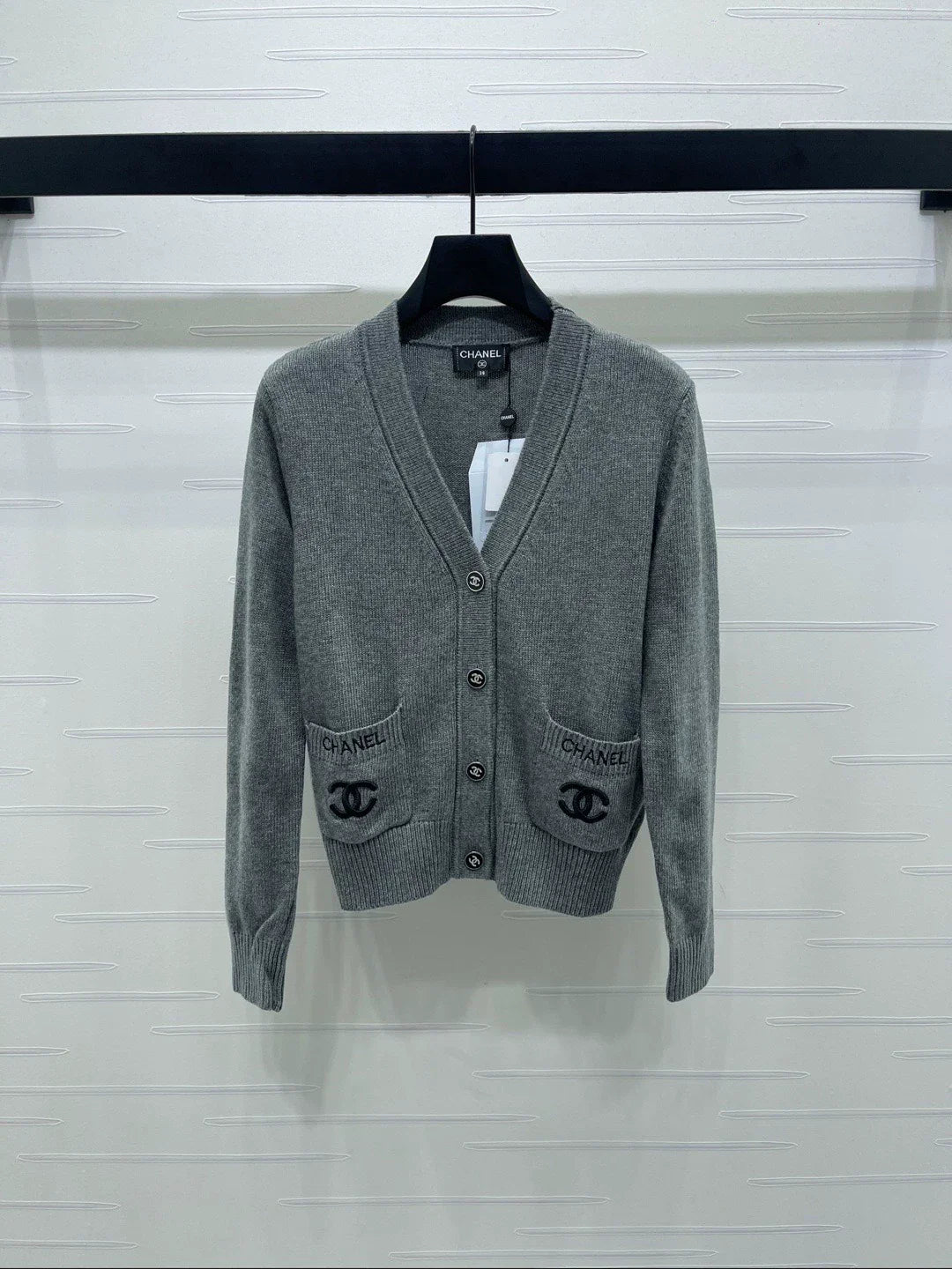 Woolen yarn weaving, soft and skin friendly V-neck long sleeved cardigan, three-dimensional hook weave texture, slimming without losing fashion sense, elastic cuffs and hem, threaded edging that fits the hem, double pockets embroidered with brand logo, showcasing brand tone, preferred for daily wear