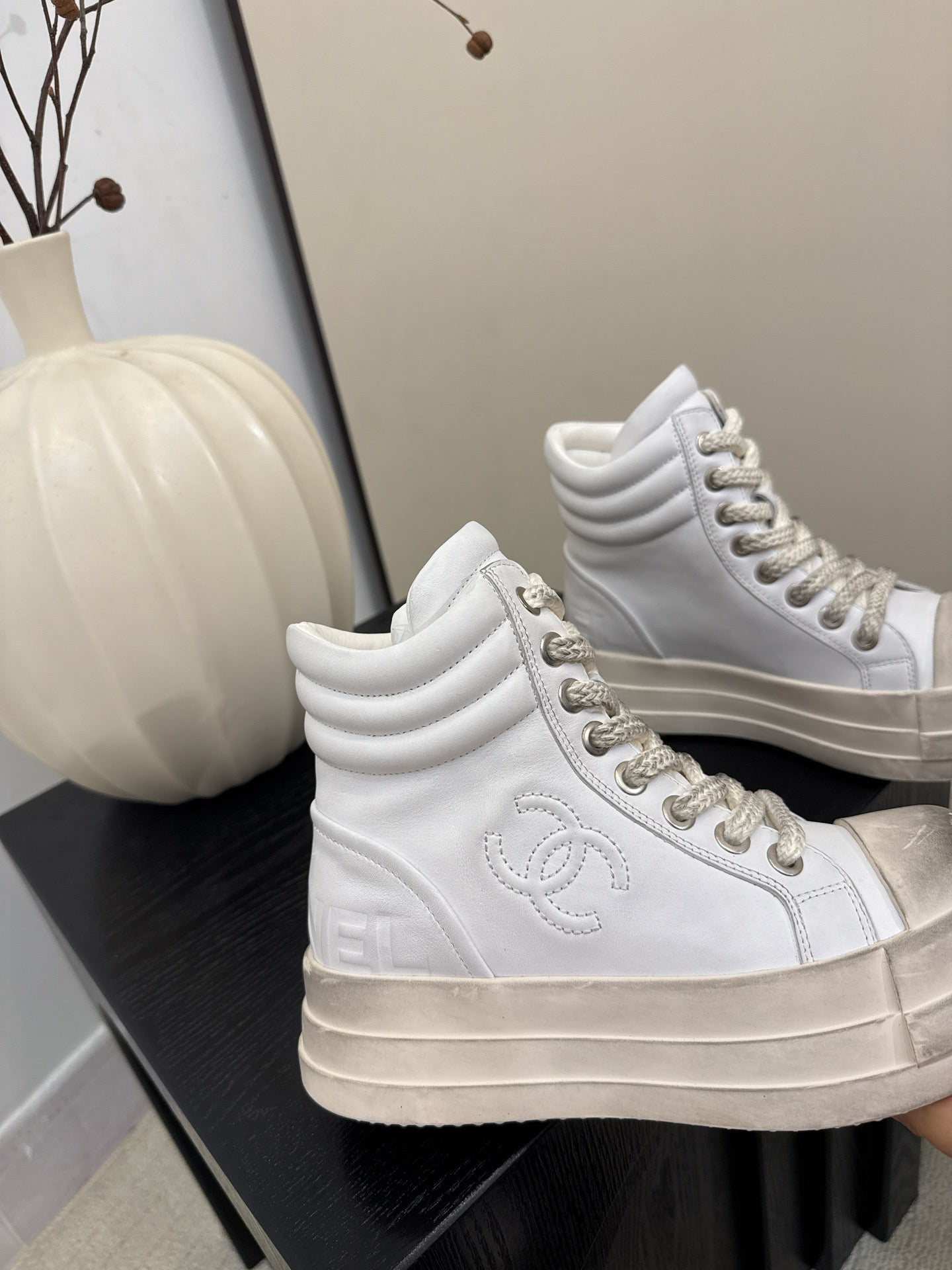 25 Make old thick soled mid top casual shoes(WHITE/NAVY/BLACK)