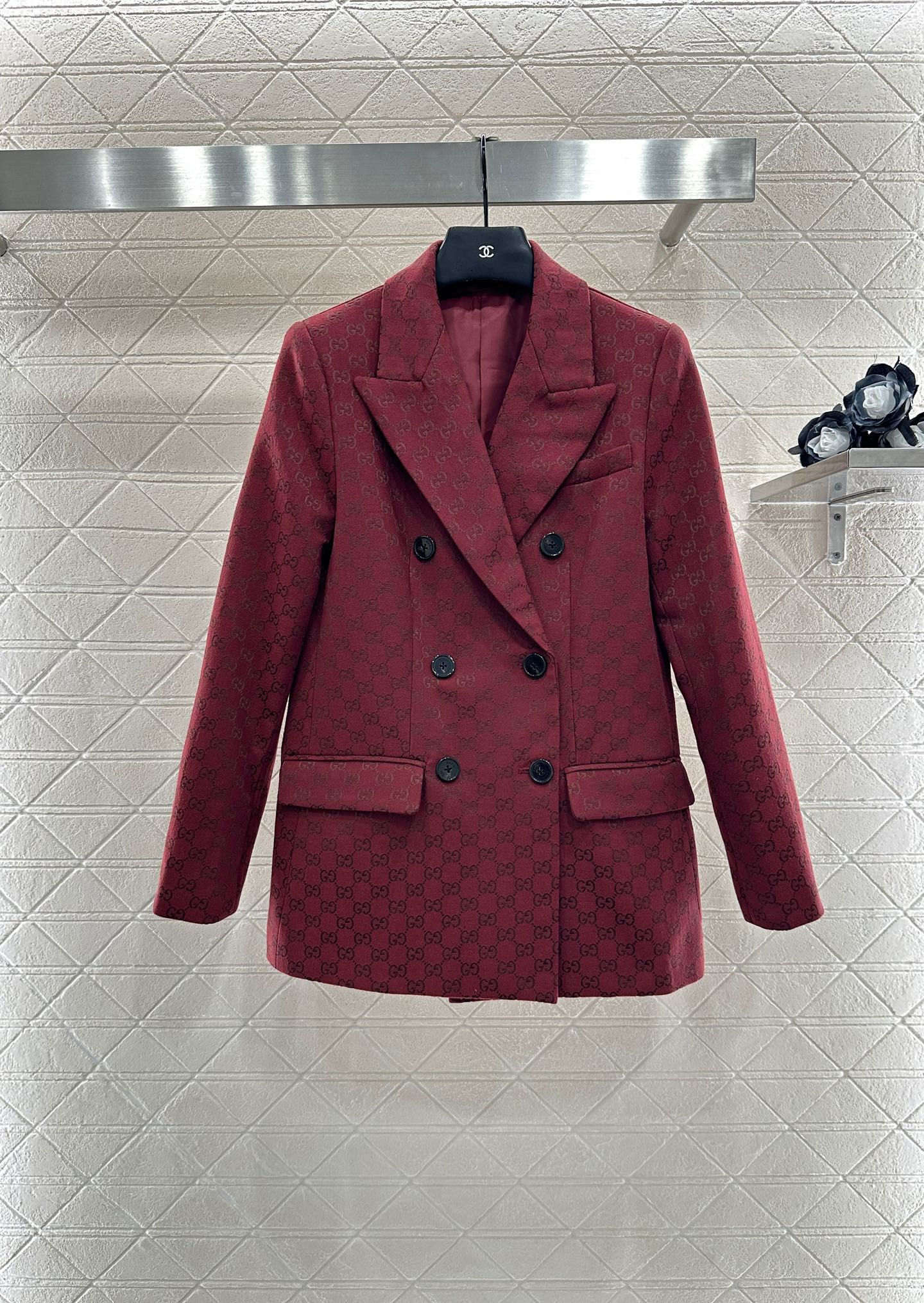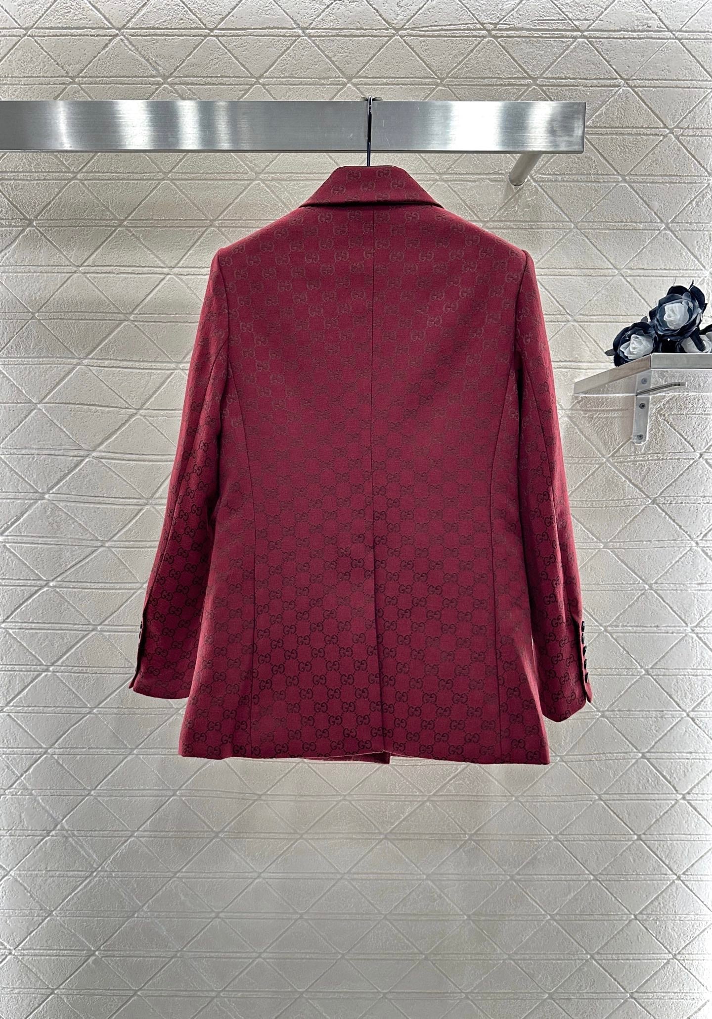 Imported jacquard material texture, high-end comfort, crisp lapel, suit jacket, long pants set, ready to wear clothing with a strong sense of old money, double G letter logo jacquard as the design highlight, flip cover symmetrical pocket design, rich design hierarchy, more fashionable front double breasted details ➕ Three dimensional cutting effectively narrows the back waist slit, outlining curves for a slimmer look. Conventional waist cinching design