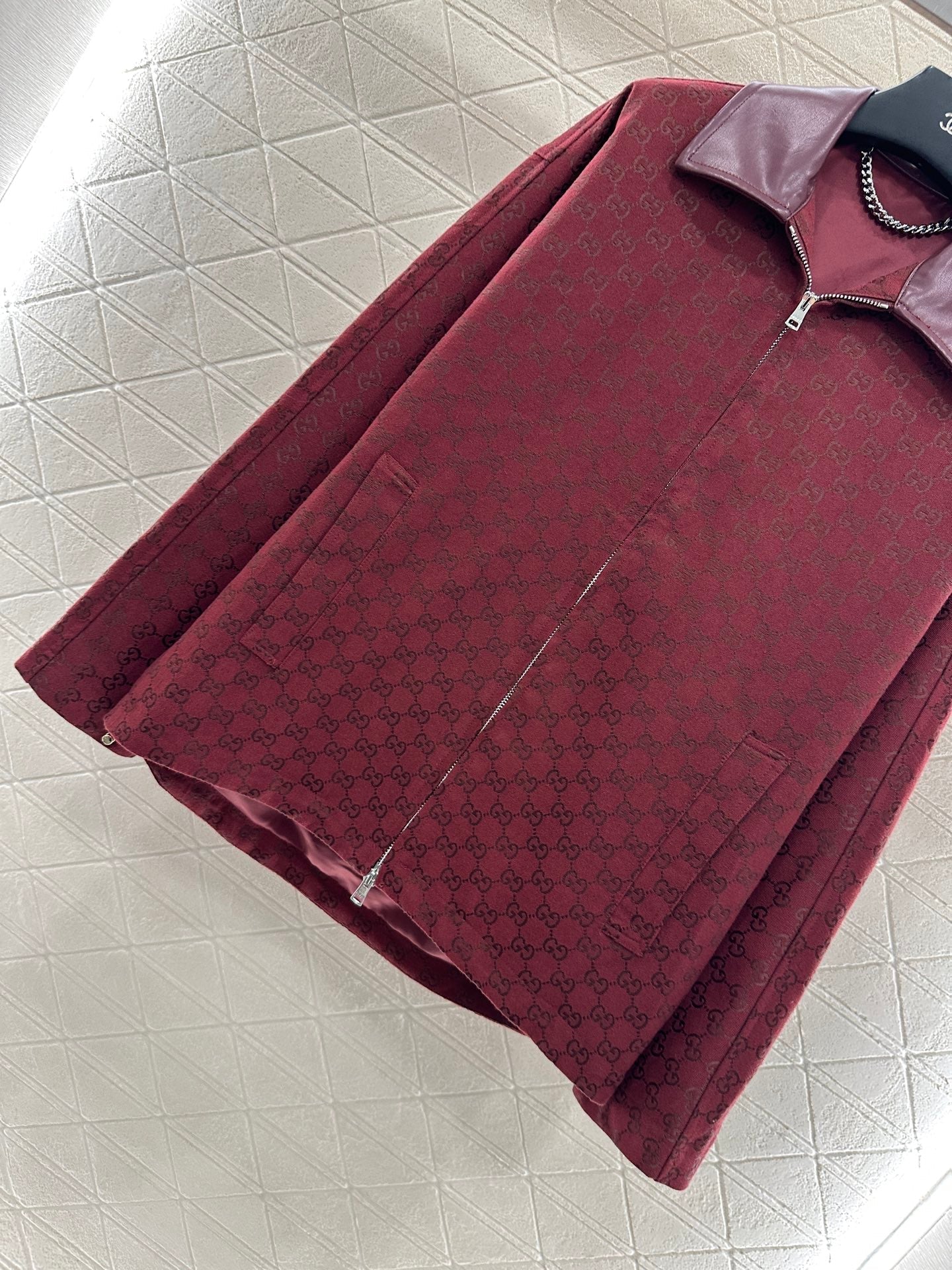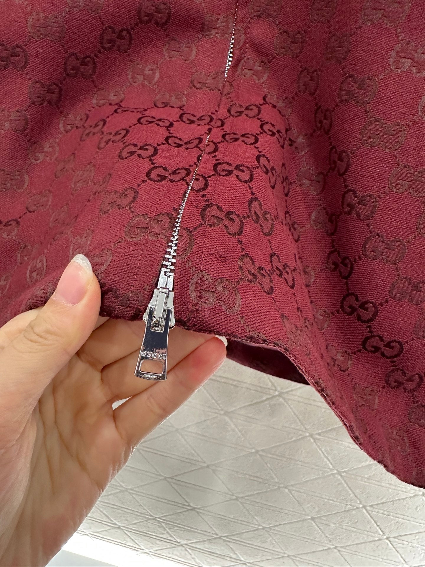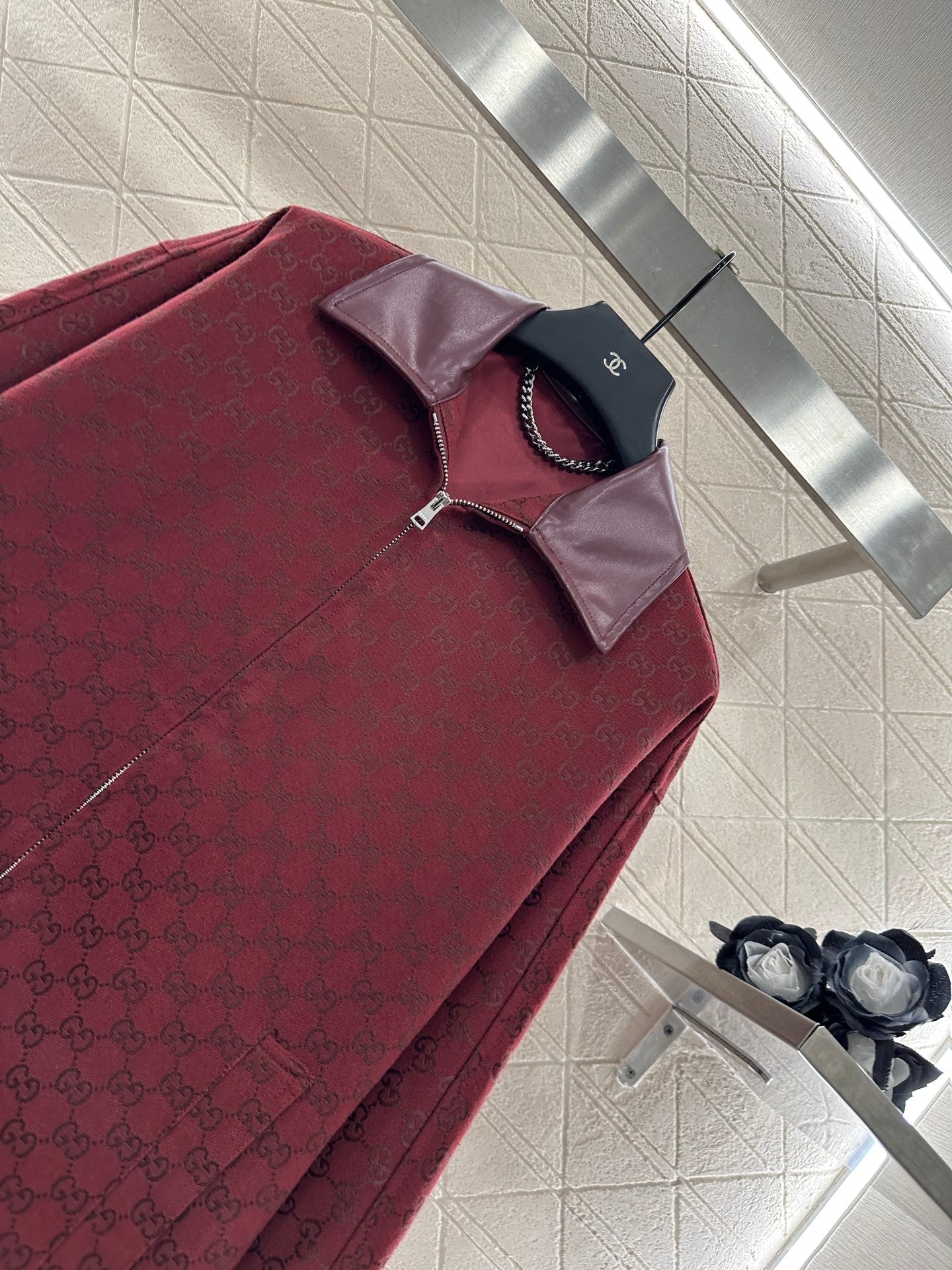 Imported jacquard all cotton material texture, high-end crisp and stylish lapel loose silhouette jacket paired with shorts set, two-way zipper open collar adjustable cutting, simple and fashionable all body double G jacquard full print leather lapel collision details, overall low-key high-end matching, same series high waisted shorts, top and bottom details echo the brand style