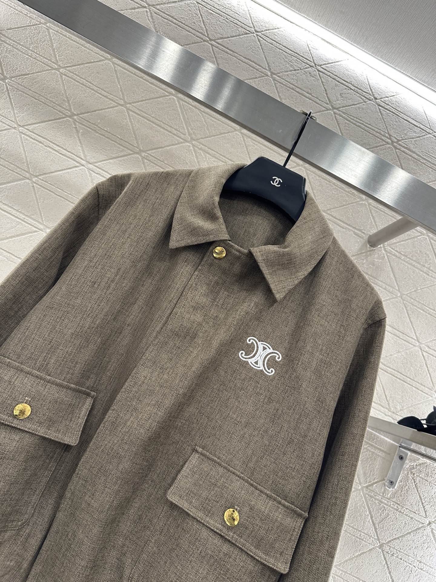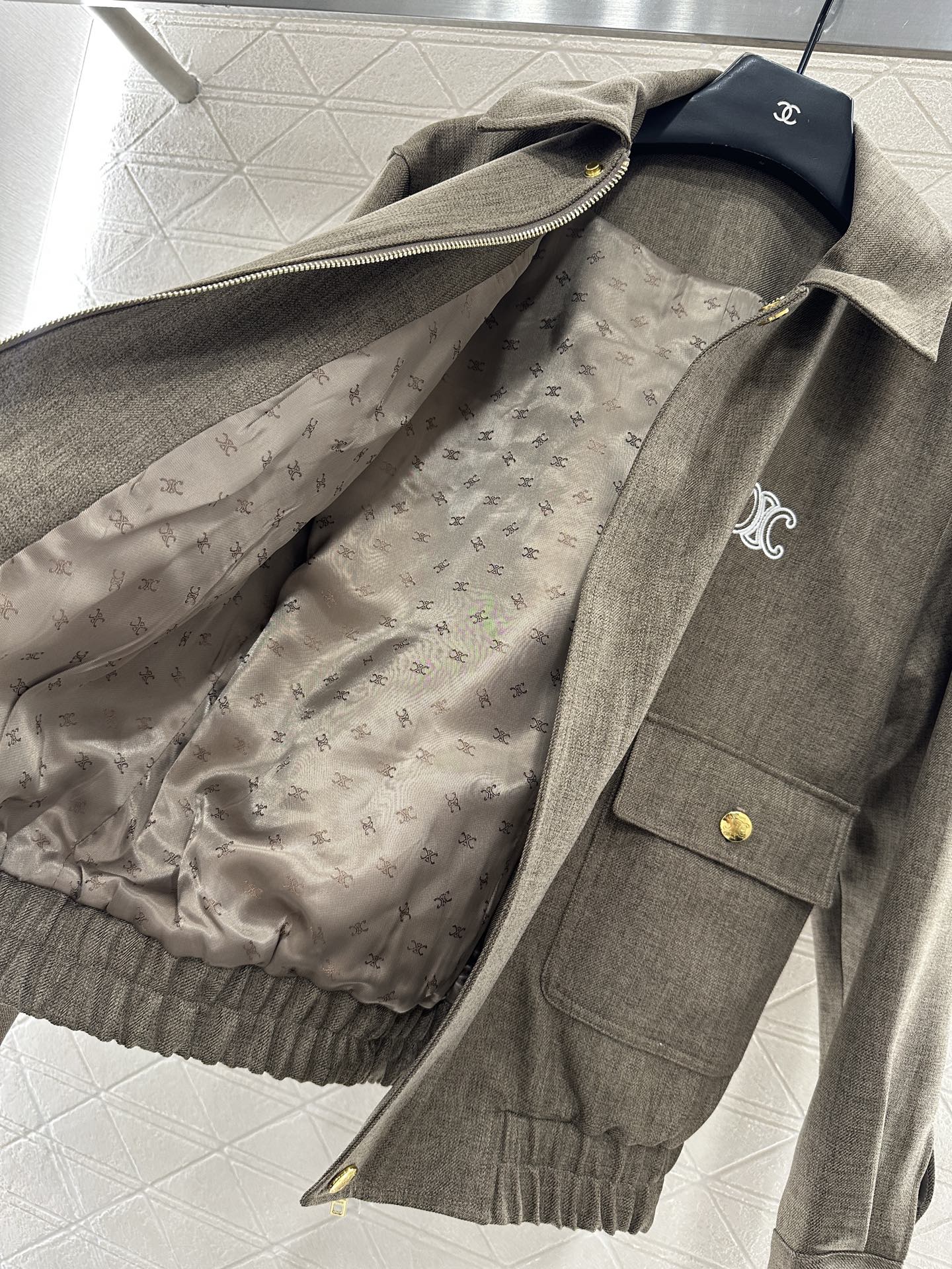 High quality texture, full of appearance, jacket jacket ➕ A high waisted half skirt set, with a fashionable college style upper body. Shoulder shaped baseball jacket with symmetrical flap pockets ➕ Triumphal Arch pattern on the chest, gold snap button design, low-key and fashionable, highlighting the overall brand tone. High waisted pleated half skirt with slightly flared skirt hem ➕ Wrinkle treatment, anti-aging tool, effortless matching, high-end fashionable style, both can be very versatile items when separated 🉑 Meet multiple needs with matching