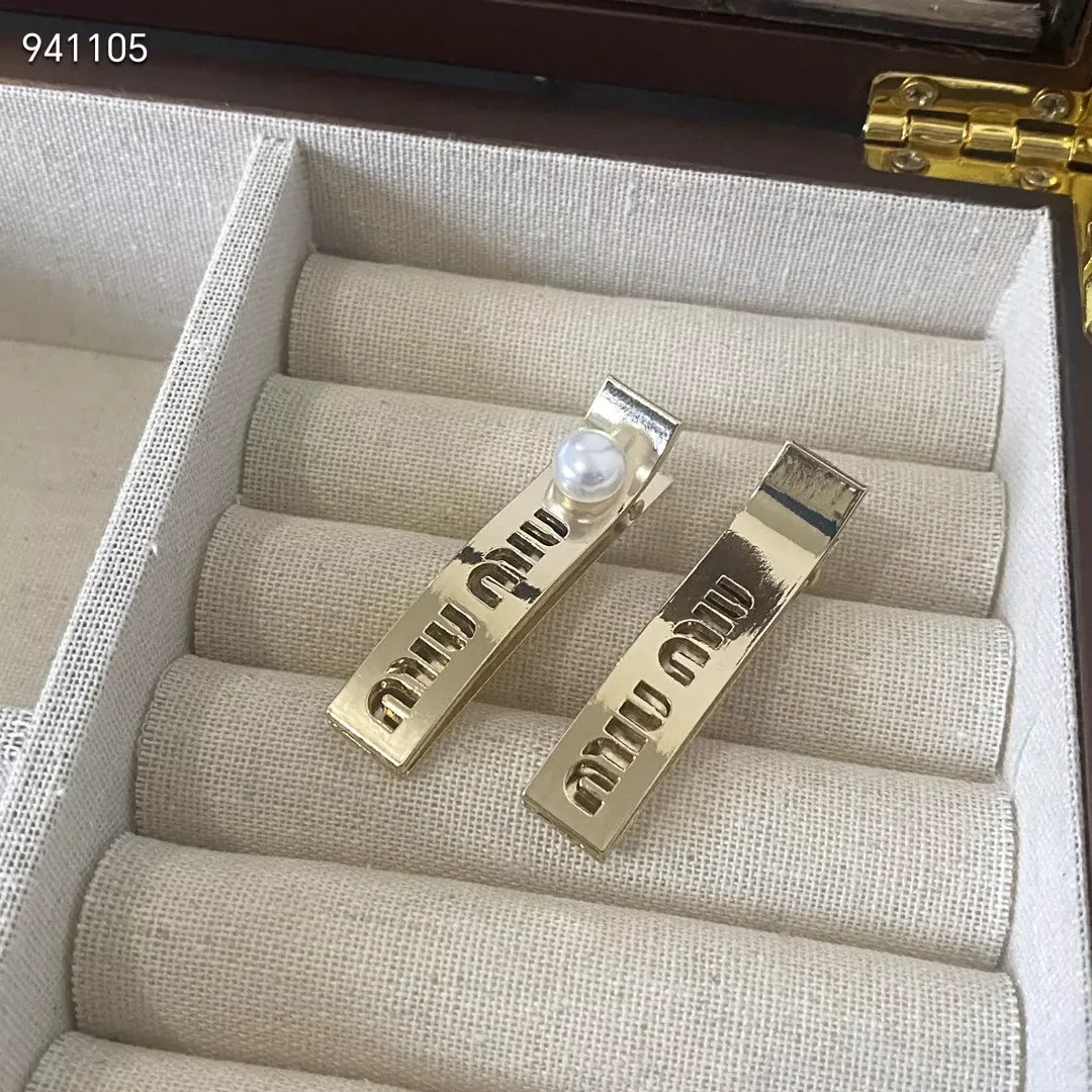 One character pearl letter hair clip
